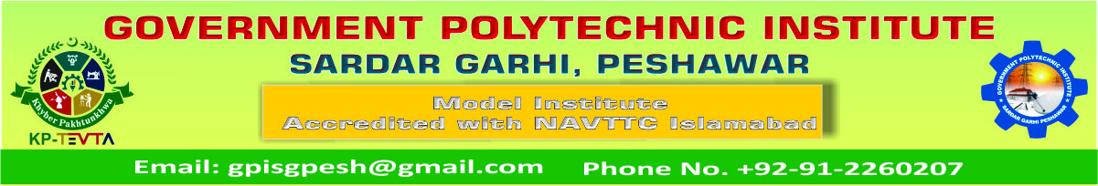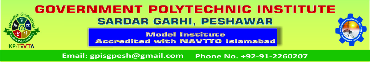 Admissions are open at GPI Sarda Garhi, Peshawar, in the following disciplines. DAE Electrical DAE Electronics DAE Civil